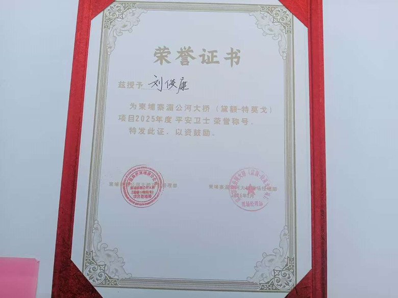 基礎公司柬埔寨湄公河大橋項目榮獲甲方好評 員工劉俊康獲評“安全衛(wèi)士”